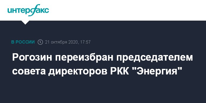 Москва. 21 октября. INTERFAX.RU - Глава "Роскосмоса" Дмитрий Рогозин вновь избран председателем совета директоров ПАО "РКК "Энергия", готовится в материалах компании.
