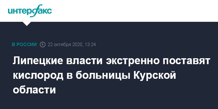 Москва. 22 октября. INTERFAX.RU - Администрация Липецкой области в срочном порядке отправит в больницы Курской области кислород, который необходим для лечения пациентов с COVID-19. Об этом сообщил на своей странице в инстаграме замглавы администрации Липецкой области Дмитрий Аверов.