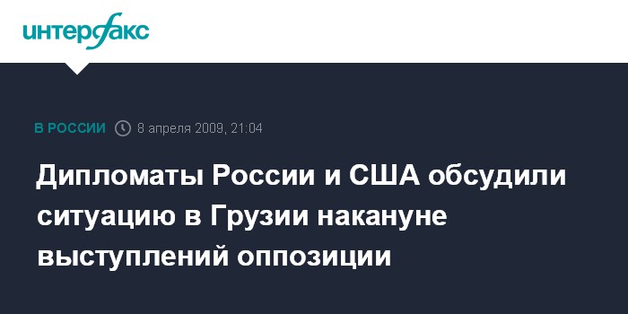 Москва. 8 апреля. INTERFAX.RU - Ситуация в Грузии накануне ожидаемых 9 апреля выступлений грузинской оппозиции стала одной из тем телефонного разговора между статс-секретарем - заместителем министра иностранных дел РФ Григорием Карасиным и послом США в Москве Джоном Байерли, состоявшегося по инициативе российской стороны.