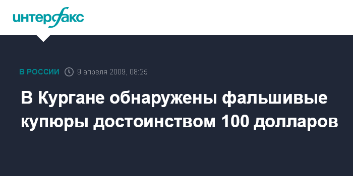 Курган. 9 апреля. INTERFAX.RU - Сотрудники правоохранительных органов Кургана в начале апреля текущего года выявили на территории города факты сбыта двух поддельных купюр достоинством 100 долларов США.