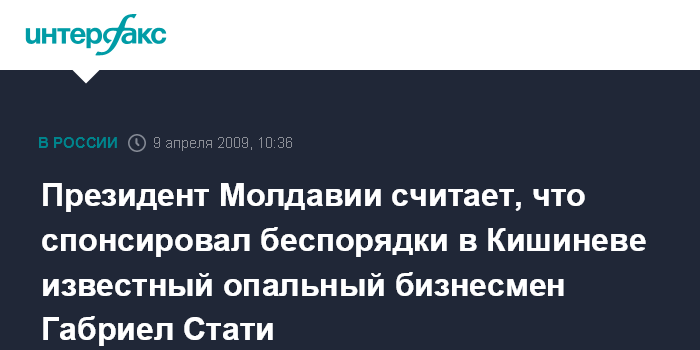 Президент Молдавии считает, что спонсировал беспорядки в Кишиневе известный опальный бизнесмен Габриел Стати