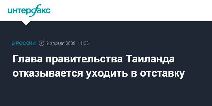 Москва. 9 апреля. INTERFAX.RU - Премьер-министр Таиланда Абхисит Ветчачива в четверг отказался уходить в отставку, несмотря на требование, прозвучавшее со стороны сотен тысяч его противников, собравшихся в Бангкоке.
