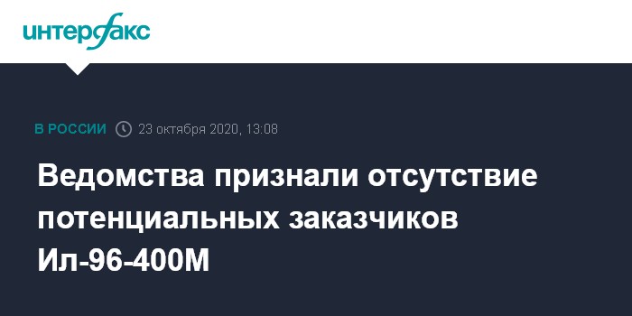 Москва. 23 октября. INTERFAX.RU - Минтранс подготовил проект постановления правительства, в котором субсидии на поддержку производства и поставок самолетов Ил-96-400М в очередной раз предложено перераспределить в пользу других продуктов отечественного авиапрома: Ил-114-300, вертолетов Ми-8, Ми-38 и "Ансат". В качестве причины этого решения указано отсутствие потенциальных заказчиков Ил-96-400М.