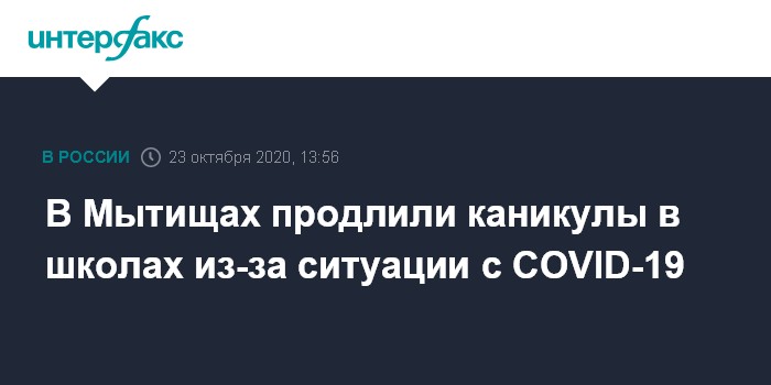 Москва. 23 октября. INTERFAX.RU - Ученики школ городского округа Мытищи выйдут с осенних каникул не 1, а 5 ноября, такое решение принято в связи со сложной эпидемиологической обстановкой, сообщил глава муниципалитета Виктор Азаров.