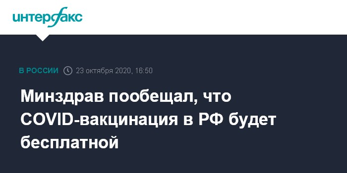 Минздрав пообещал, что COVID-вакцинация в РФ будет бесплатной
