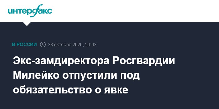 Экс-замдиректора Росгвардии Милейко отпустили под обязательство о явке