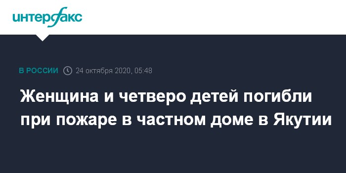 Женщина и четверо детей погибли при пожаре в частном доме в Якутии