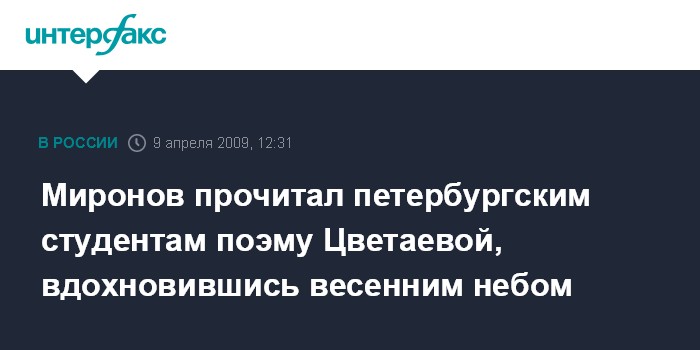 Миронов прочитал петербургским студентам поэму Цветаевой, вдохновившись весенним небом