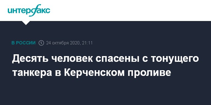 Десять человек спасены с тонущего танкера в Керченском проливе