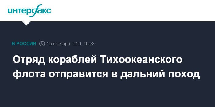 Как сообщал "Интерфакс", в конце сентября из дальнего похода вернулся отряд Тихоокеанского флота в составе больших противолодочных кораблей "Адмирал Трибуц" и "Адмирал Виноградов", большого морского танкера "Борис Бутома".