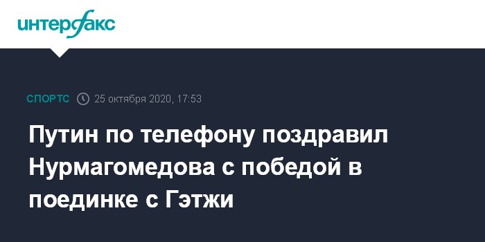Москва. 25 октября. INTERFAX.RU - Президент России Владимир Путин по телефону поздравил российского бойца смешанных единоборств Хабиба Нурмагомедова, который одержал победу над американцем Джастином Гэтжи в рамках турнира UFC, сообщил в воскресенье журналистам пресс-секретарь главы государства Дмитрий Песков.