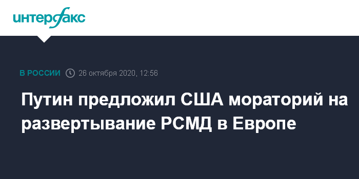 Москва. 26 октября. INTERFAX.RU - Россия не будет вести развертывание новых ракет средней и меньшей дальности (РСМД) до тех пор, пока от размещения такого оружия в Европе воздержатся США, заявил президент РФ Владимир Путин.