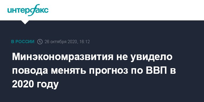 Последнюю версию макропрогноза Минэкономразвития выпустило в сентябре. Оно уменьшило прогноз падения ВВП России на 2020 год до 3,9% с 4,8% в июньской версии. Прогноз о росте ВВП в 2021 году был повышен до 3,3% с 3,2%, на 2022 год - до 3,4% (с 2,9%).