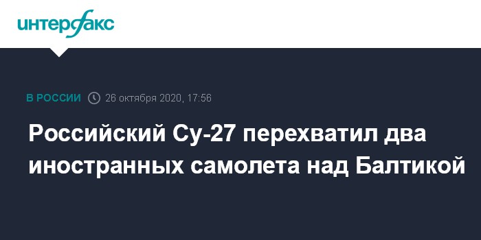 Москва. 26 октября. INTERFAX.RU - Российский истребитель Су-27 вылетал на сопровождение самолета базовой патрульной авиации Р-3С "Орион" ВМС Германии и самолета-разведчика U-2S ВВС США в районе Балтийского моря, сообщили в Национальном центре управления обороной (НЦУО) РФ.