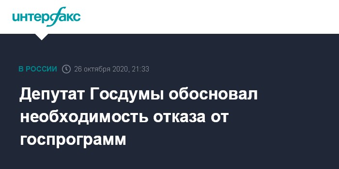 Депутат Госдумы обосновал необходимость отказа от госпрограмм