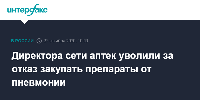 Директора сети аптек уволили за отказ закупать препараты от пневмонии