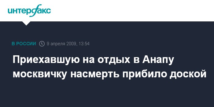 Москва. 9 апреля. INTERFAX.RU - Следственный отдел по Анапе (Краснодарский край) проводит проверку по факту смерти 82-летней жительницы Москвы, которая приехала на отдых в курортный город и погибла от удара доской, оторвавшейся от строительных лесов.