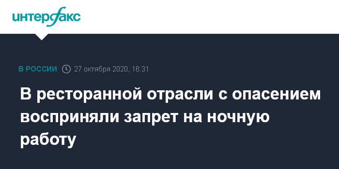 Во вторник, 27 октября, было опубликовано постановление главного государственного санитарного врача Анны Поповой, которое содержит рекомендации властям регионов РФ по запрету зрелищно-развлекательных мероприятий и услуг общественного питания с 11 часов вечера до 6 часов утра.
