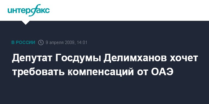 Москва. 9 апреля. INTERFAX.RU - Депутат Госдумы от Чечни Адам Делимханов намерен потребовать компенсации морального и материального вреда российским гражданам, которые были задержаны в Дубае в связи с покушением на экс-командира батальона "Восток" Сулима Ямадаева.