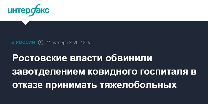 Позже власти города опровергли эту информацию, заявив, что "информация о количестве и причинах гибели пациентов в 20-й поликлинике Ростова-на-Дону, которая принимает сейчас пациентов с коронавирусом, не соответствует действительности". По их данным, в эти дни аварийных ситуаций, связанных с поставкой кислорода на территорию данной больницы не было, как и аварийных ситуаций, которые могли бы повлечь смерть пациентов.