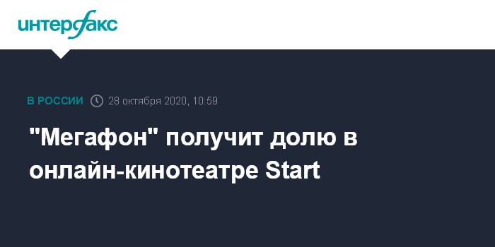 Москва. 28 октября. INTERFAX.RU - ПАО "Мегафон" приобретает 33,8% головной компании холдинга Start, который специализируется на производстве и стриминге российских фильмов и сериалов, сообщили "Ведомостям" участники сделки.