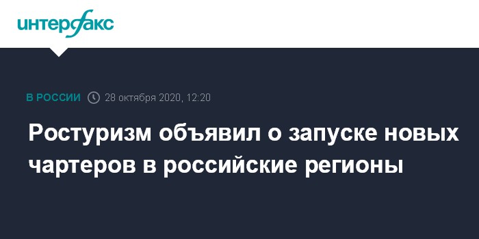 Москва. 28 октября. INTERFAX.RU - Чартеры в ряд российских регионов будут запущены в зимний и предстоящий летний сезоны, сообщила глава Ростуризма Зарина Догузова на онлайн пресс-конференции в "Интерфаксе" в среду.