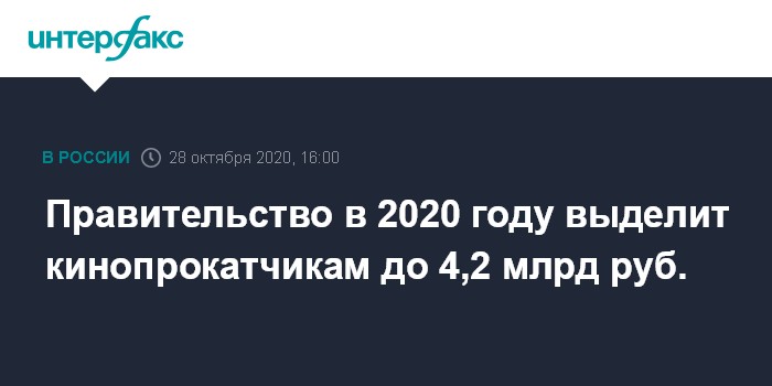 Правительство в 2020 году выделит кинопрокатчикам до 4,2 млрд руб.