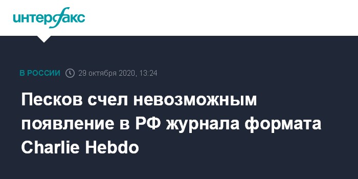 Москва. 29 октября. INTERFAX.RU - Существование журналов, подобных французскому Charlie Hebdo, в России невозможно, заявил журналистам пресс-секретарь президента Дмитрий Песков.