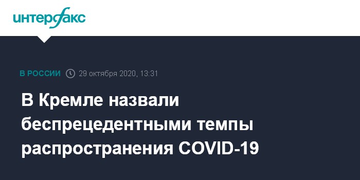В Кремле назвали беспрецедентными темпы распространения COVID-19