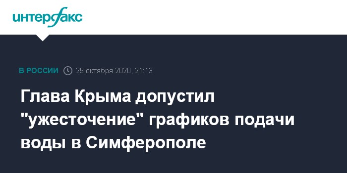 Как сообщалось, засушливая погода наблюдается в Крыму в 2019 и 2020 годах и может, по прогнозам, продлиться в 2021-м. В августе графики подачи воды по часам ввели в Симферополе и еще 39 населенных пунктах поблизости. С 23 сентября воду начали отключать по ночам в курортной Алуште и ряде поселков на юге полуострова. С середины октября давление в трубах снижают в Белогорске. Власти Севастополя из-за дефицита воды объявили режим повышенной готовности.