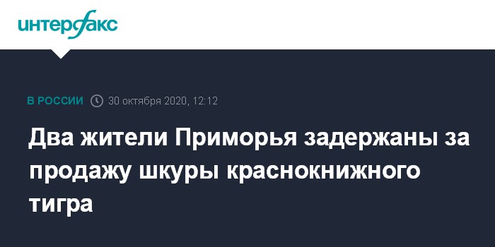 Москва. 30 октября. INTERFAX.RU - Два жителя Приморья стали фигурантами уголовного дела о продаже шкуры амурского тигра иностранцу.