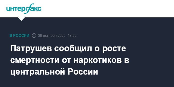 Москва. 30 октября. INTERFAX.RU - В регионах центра России на 17% выросла смертность от употребления наркотиков, сообщил секретарь Совета безопасности РФ Николай Патрушев.