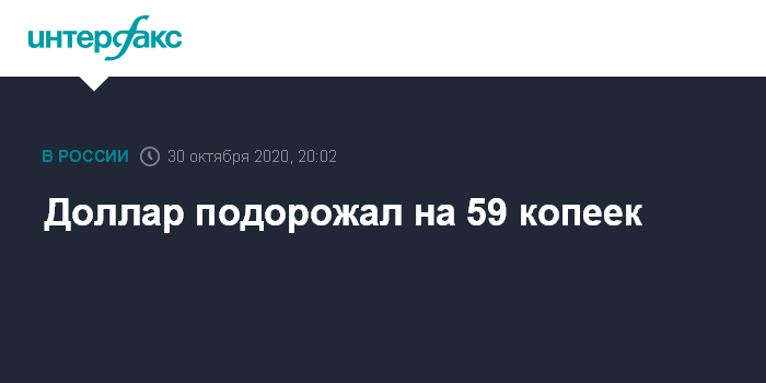Москва. 30 октября. INTERFAX.RU - В пятницу рубль подешевел к бивалютной корзине на "Московской бирже" на фоне бегства инвесторов из рисковых активов из-за неопределенности относительно итогов президентских выборов в США и введения в ряде стран новых карантинных мер.
