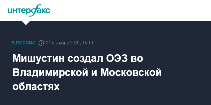 Москва. 31 октября. INTERFAX.RU - В Московской и Владимирской областях будут созданы новые особые экономические зоны (ОЭЗ). Постановления об этом подписал Председатель Правительства Михаил Мишустин.