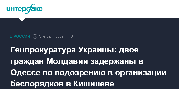 Генпрокуратура Украины: двое граждан Молдавии задержаны в Одессе по подозрению в организации беспорядков в Кишиневе