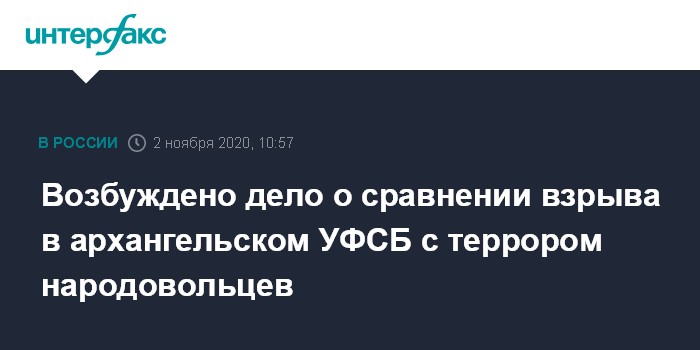 Возбуждено дело о сравнении взрыва в архангельском УФСБ с террором народовольцев