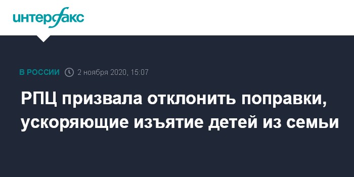 Москва. 2 ноября. INTERFAX.RU - Русская православная церковь подвергла критике планы депутатов Госдумы принять поправки, которые позволят в течение суток изымать детей из семьи в случае угрозы их жизни и здоровью по решению суда, в церкви призвали власти РФ отказаться от этой инициативы.