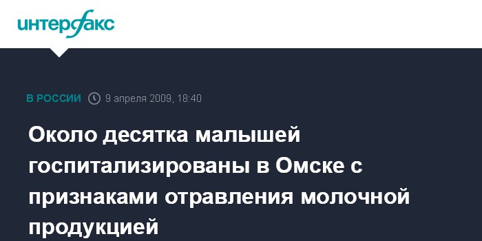 Москва. 9 апреля. INTERFAX.RU - Прокуратура Омска в связи с обращением руководителя управления Роспотребнадзора по Омской области проводит проверку по факту массового отравления малолетних детей молочной продукцией.
