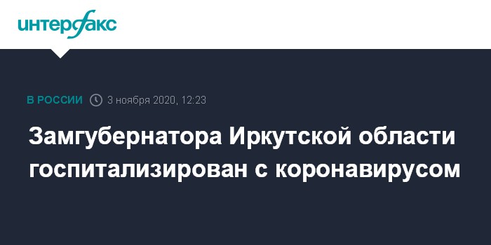 Замгубернатора Иркутской области госпитализирован с коронавирусом