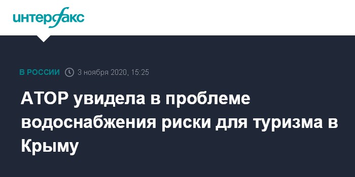 Москва. 3 ноября. INTERFAX.RU - Проблемы с водоснабжением Крыма могут повлиять на результаты туристического сезона в регионе, если зимой туристы столкнутся с нехваткой воды, это может привести к оттоку гостей в следующем сезоне, заявила исполнительный директор ассоциации туроператоров России (АТОР) Майя Ломидзе.