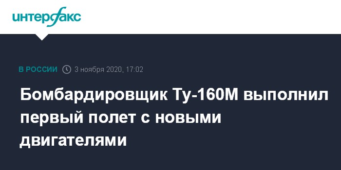 Бомбардировщик Ту-160М выполнил первый полет с новыми двигателями