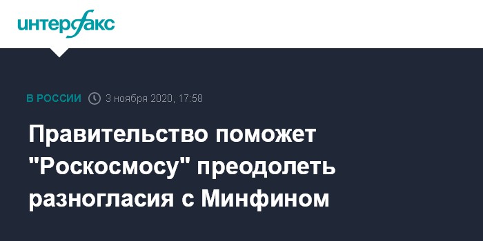 "Есть соответствующее поручение правительства РФ о формировании уточненных редакций программ "Роскосмоса". Правительство будет помогать "Роскосмосу" преодолевать разногласия с финансово-экономическим блоком", - говорится в сообщении.