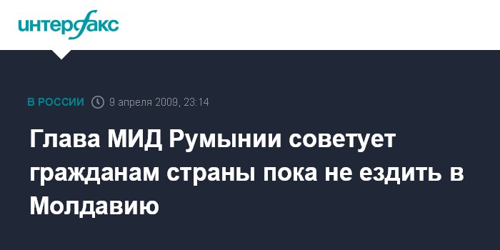 Как сообщалось ранее, власти Молдавии после массовых беспорядков в Кишиневе обвинили Румынию во вмешательстве во внутренние дела и ввели с этой страной в четверга визовый режим. Посол Румынии и первый секретарь посольства Румынии в Кишиневе в четверг покинули Молдавию, так как накануне были объявлены персонами нон-грата.