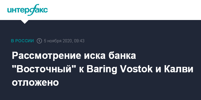 Рассмотрение иска банка "Восточный" к Baring Vostok и Калви отложено