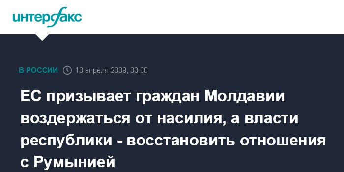 ЕС призывает граждан Молдавии воздержаться от насилия, а власти республики - восстановить отношения с Румынией