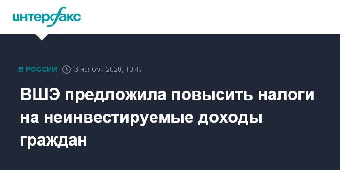 Москва. 6 ноября. INTERFAX.RU -Национальный исследовательский университет "Высшая школа экономики" (ВШЭ) в заключении на проект бюджета на 2021-2023 годы предложил повысить налоги на неинвестируемые доходы граждан и свободные средства корпораций.