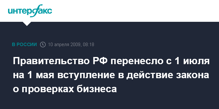 Правительство РФ перенесло с 1 июля на 1 мая вступление в действие закона о проверках бизнеса