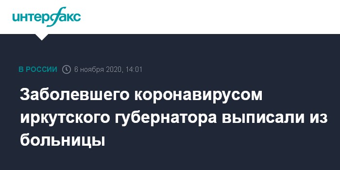 Заболевшего коронавирусом иркутского губернатора выписали из больницы