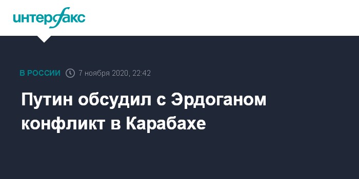 Путин обсудил с Эрдоганом конфликт в Карабахе