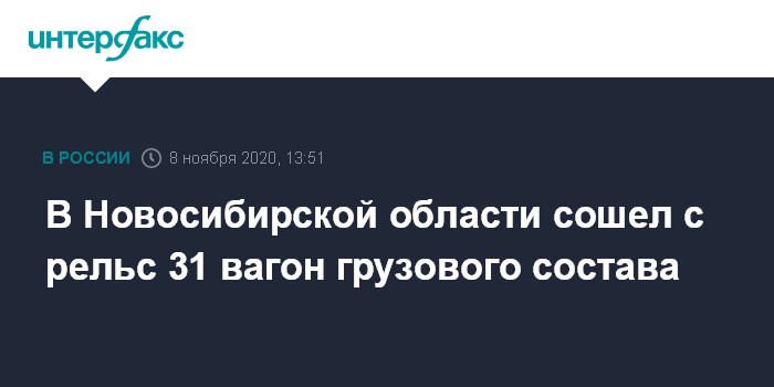 Москва. 8 ноября. INTERFAX.RU - Сход 31 вагона грузового поезда произошел на станции Татарская Новосибирского региона Западно-Сибирской железной дороги.